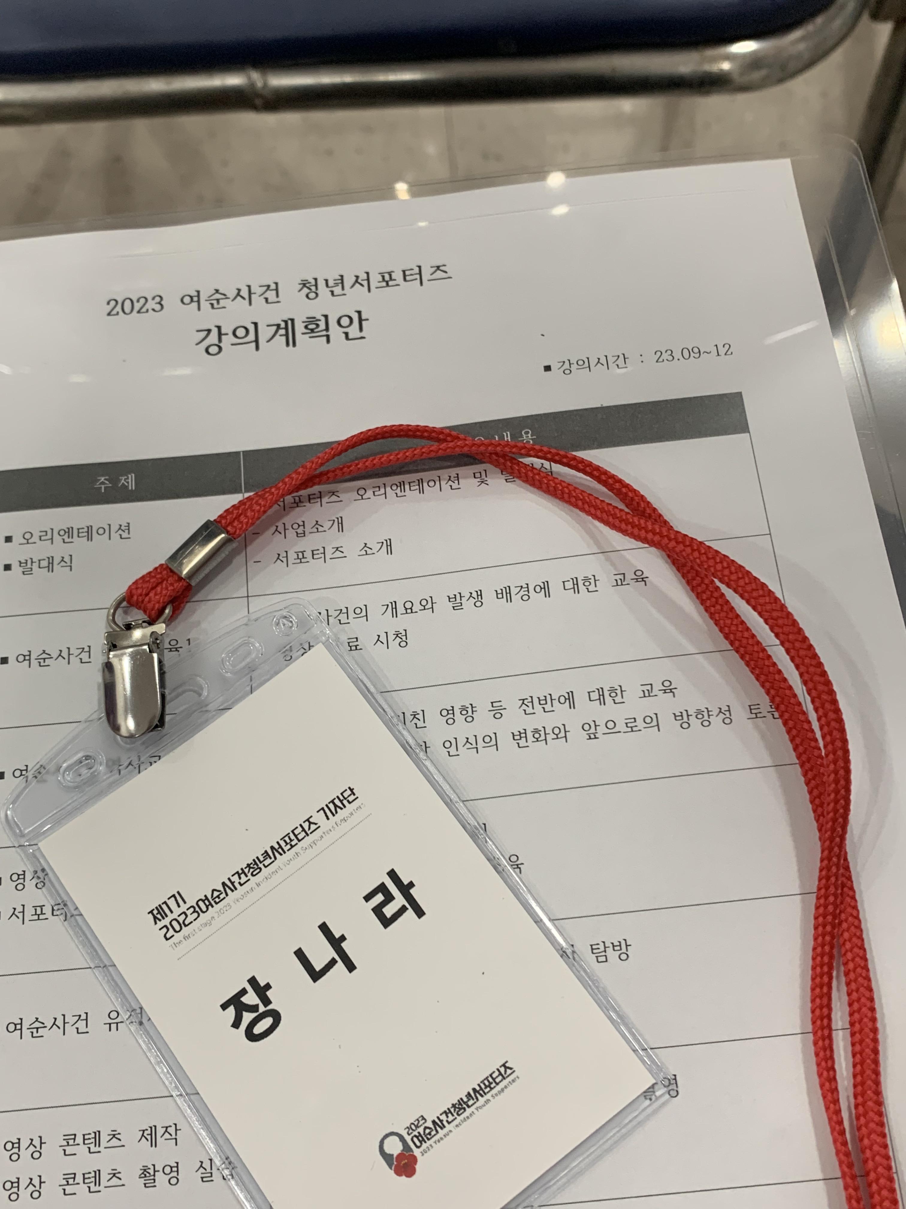 여순사건 청년 서포터즈 제1기로 참여하게 된 서포터 장나라입니다.